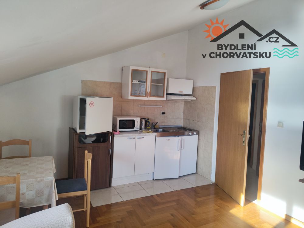 U visokom potkrovlju je jednosoban apartman s terasom. Grijanje i hlađenje i ovog kata je na vanjsku dizalicu topline (fen koleri).