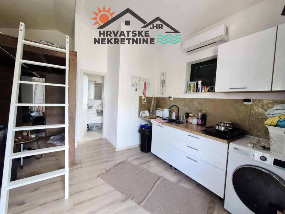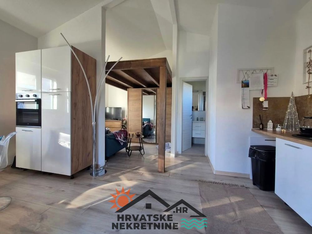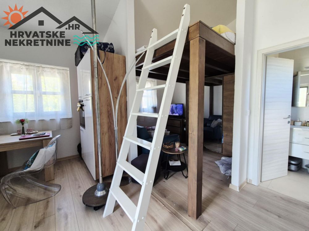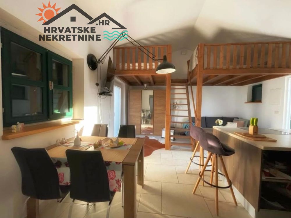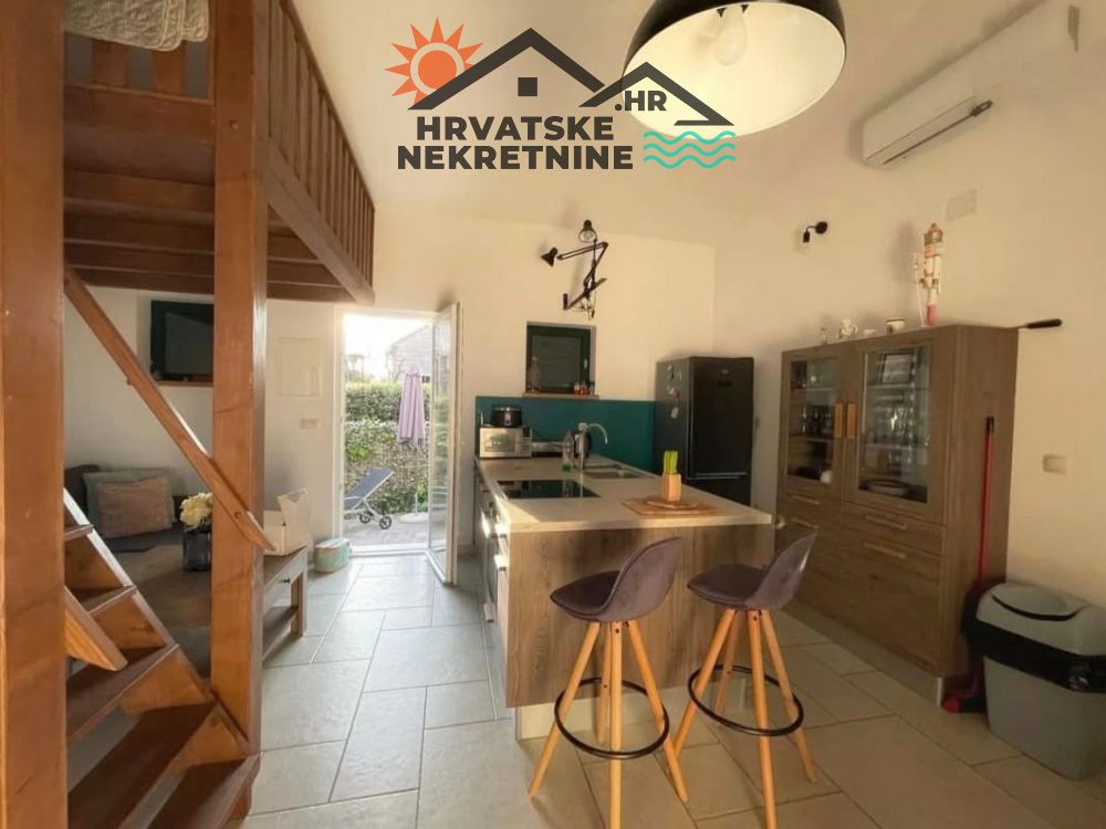 U prizemlju se nalazi dnevni boravak s kuhinjom i blagovaonicom, spavaća soba, galerija za spavanje, kupaonica, ostava. Na prvom katu nalazi se studio apartman (kuhinja + blagovaonica + dnevni boravak + kupaonica + galerija za spavanje).